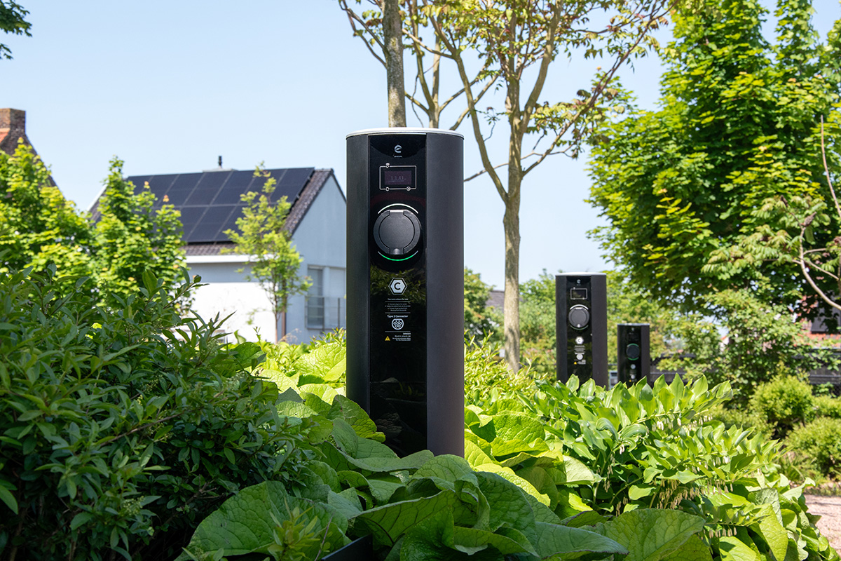 À Maldegem, nous avons installé cette élégante borne de recharge double Electricea.